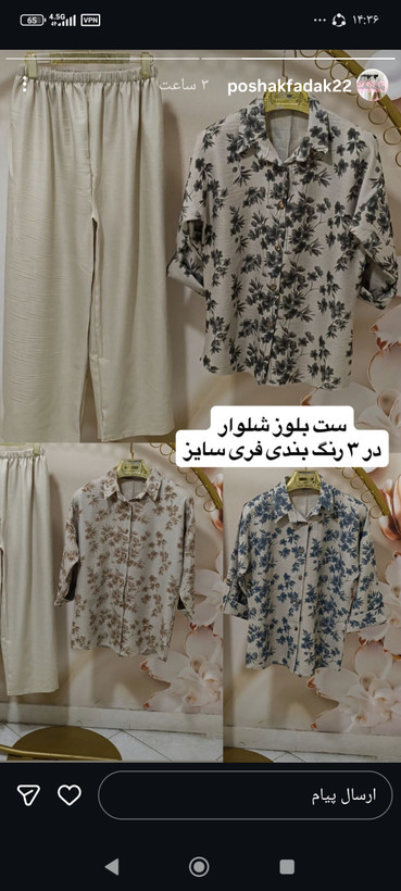 ست بلوز شلوار در سه رنگ فری سایز